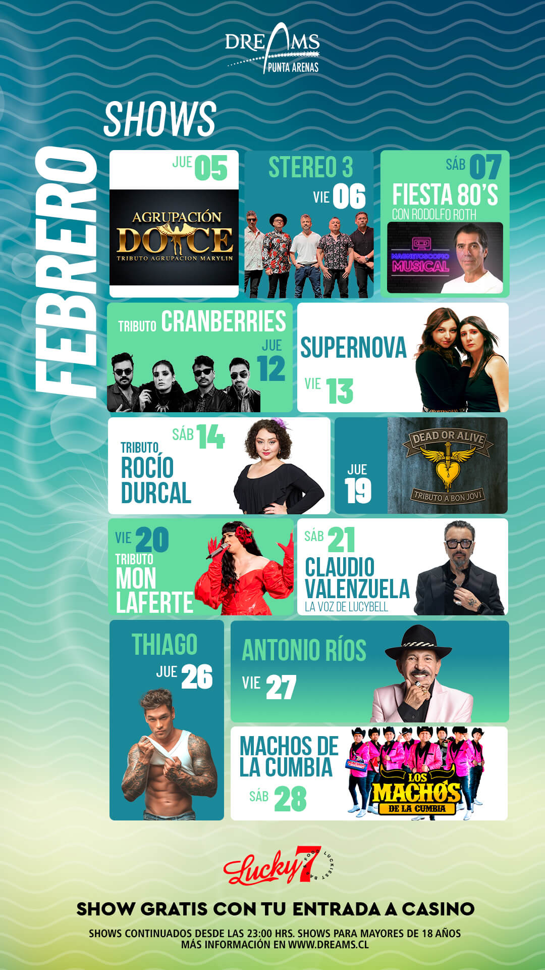 Con tu entrada al casino disfruta de los mejores shows en Bar Lucky 7🎶, el lugar perfecto para vivir una noche única.